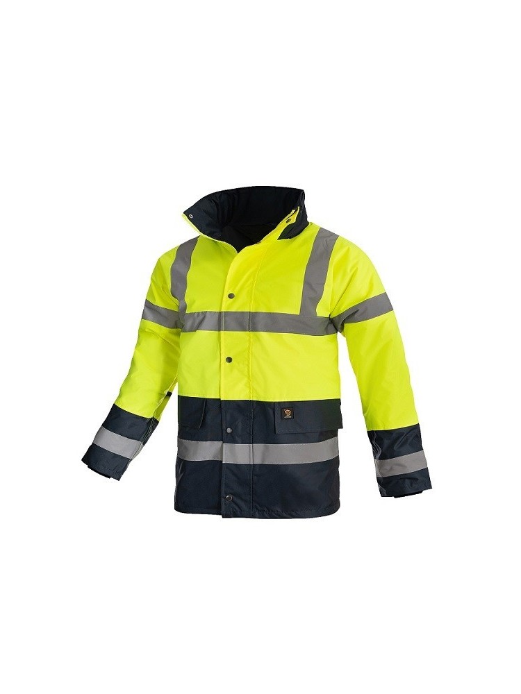 Kurtka Proviso z ociepleniem to idealna odzież robocza na zimę. Zapinana na zamek błyskawiczny, zakrywany listwą zapinaną na guziki. Kurtka posiada wygodne rękawy zakończone chowanymi ściągaczami, które poprawiają komfort oraz zapobiegają utracie ciepła. Kurtka dzięki jaskrawo-żółtym kolorom z dodatkowymi pasami odblaskowymi doskonale sprawdzi się w warunkach, gdzie widoczność pracowników jest priorytetowa dla zagwarantowania im bezpieczeństwa podczas wykonywania obowiązków.