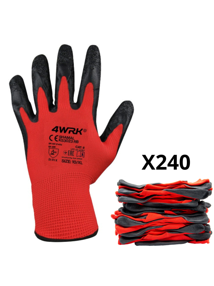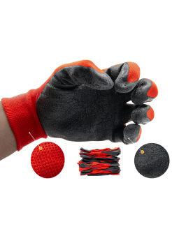 Rękawice robocze CZERWONO/CZARNE powlekane lateksem SHAMAL 240 par
