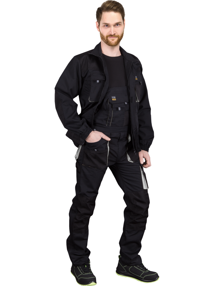 Spodnie robocze ogrodniczki czarno-szare Foreco-B