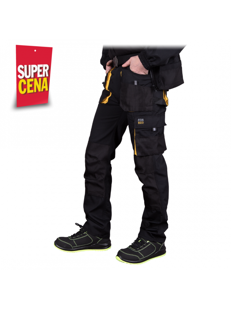 Spodnie robocze ochronne mocne szwy do pasa czarno-żółte Foreco-T